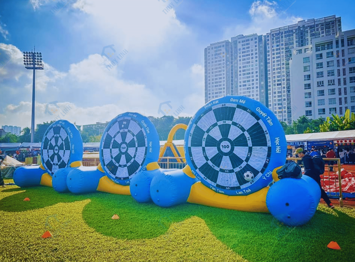 Bia bóng bơm hơi teambuilding là trò chơi vận động tập thể hấp dẫn, kết hợp giữa kỹ năng ném – đá bóng và thử thách ghi điểm. Thiết kế dạng bia lớn với mặt dính giúp bóng có thể bám vào khi sút – mang lại cảm giác vừa chơi thể thao, vừa chinh phục mục tiêu.