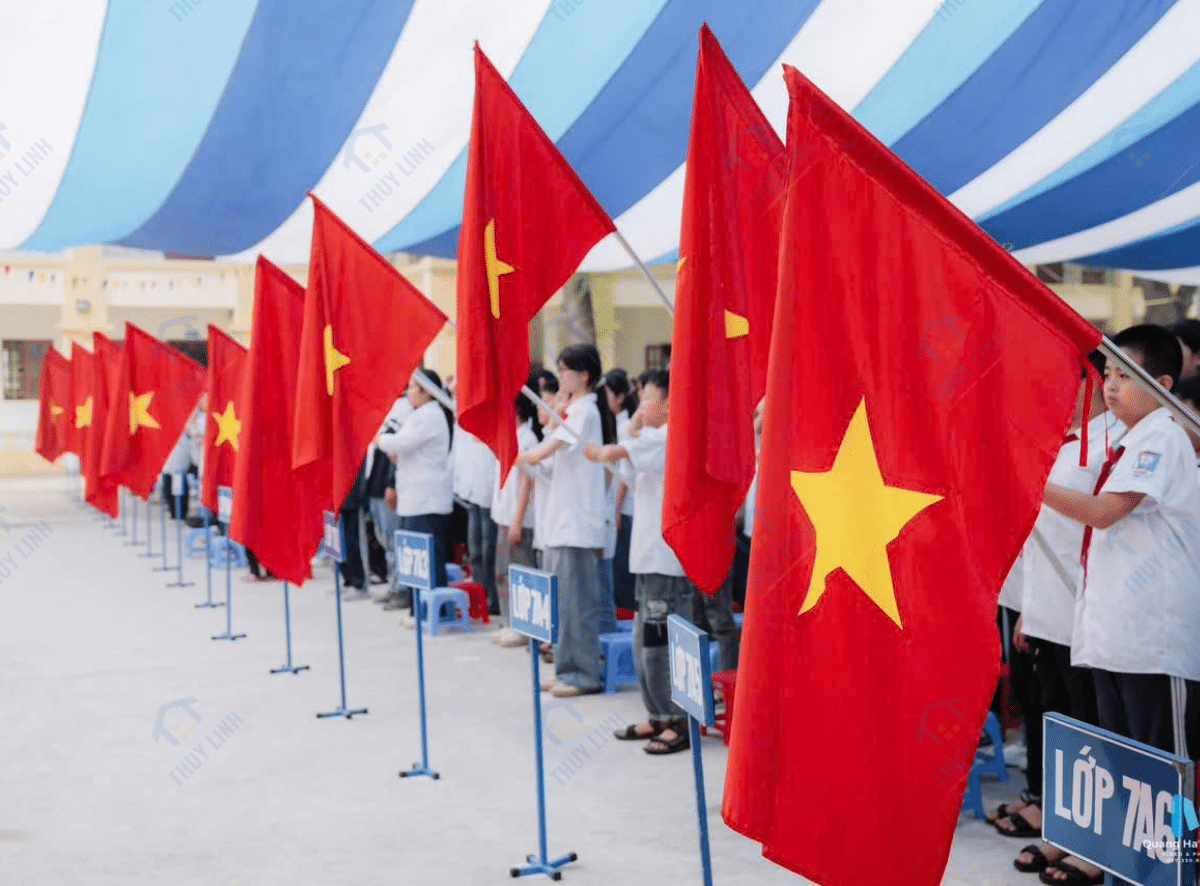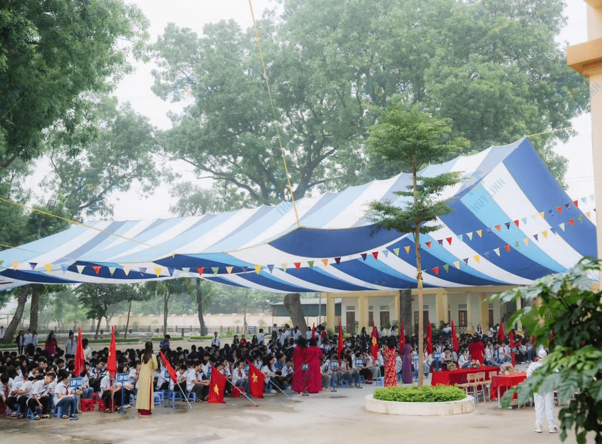 Trong lễ tổng kết năm học 2024 – 2025, Trường THCS Văn Bình – Thường Tín – Hà Nội đã lựa chọn dù 2 mái Thùy Linh làm giải pháp che nắng tối ưu cho khu vực sân trường. Với khả năng che phủ rộng và thiết kế thẩm mỹ, dù 2 mái Thùy Linh đã góp phần tạo nên không gian buổi lễ trang trọng, chuyên nghiệp.