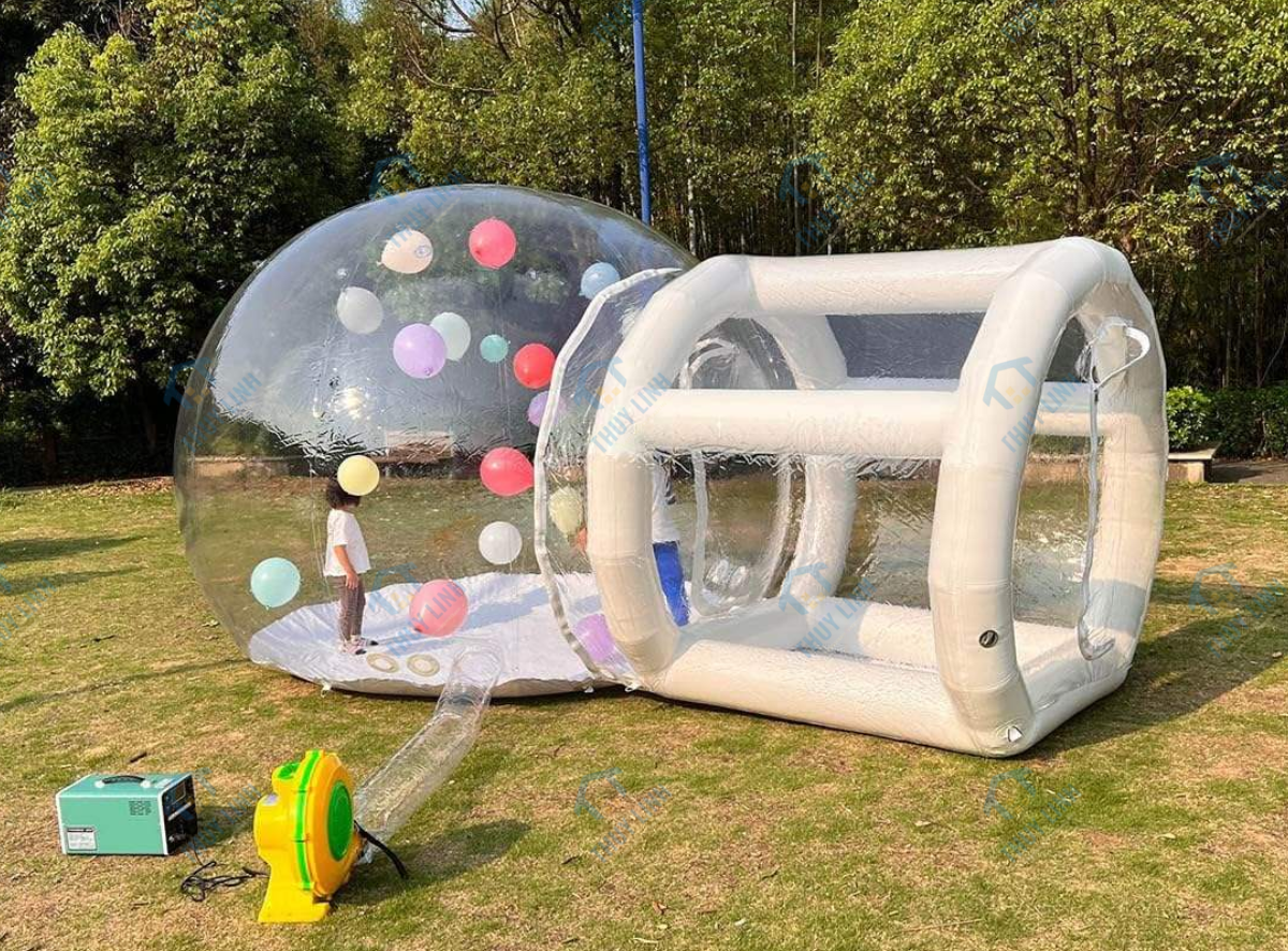 Lều bong bóng trong suốt là loại lều bơm hơi có thiết kế hình cầu trong suốt, tạo ra không gian như “nhà kính” giúp bạn gần gũi với thiên nhiên nhưng vẫn kín gió, chống mưa, chống bụi. Lều thường được dùng làm phòng nghỉ dưỡng tại các khu du lịch, glamping (cắm trại sang chảnh), homestay sinh thái hoặc tổ chức sự kiện ngoài trời.