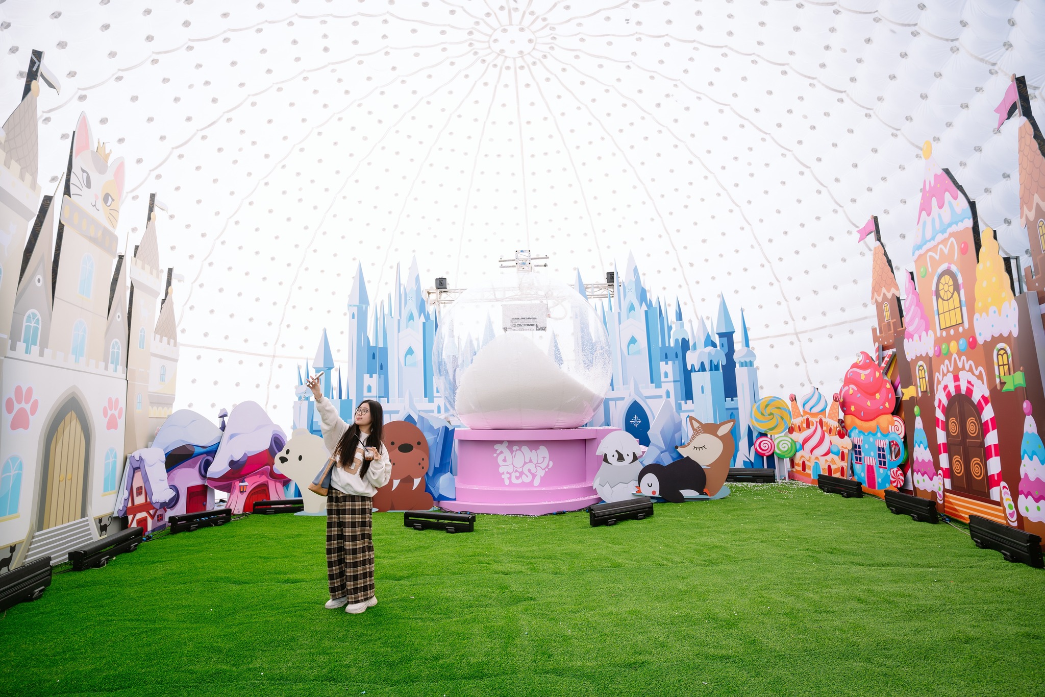 Thiết kế vòm đặc trưng không chỉ giúp lều đứng vững mà còn mang lại giá trị thẩm mỹ cao, đặc biệt nổi bật vào buổi tối khi hệ thống đèn đổi màu được kích hoạt.